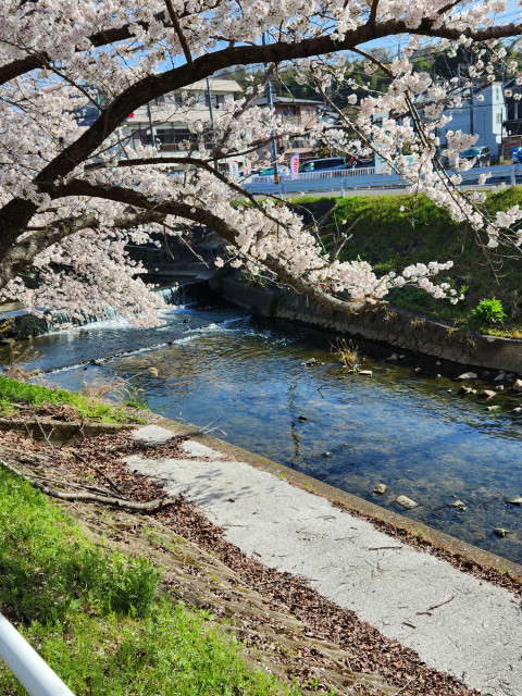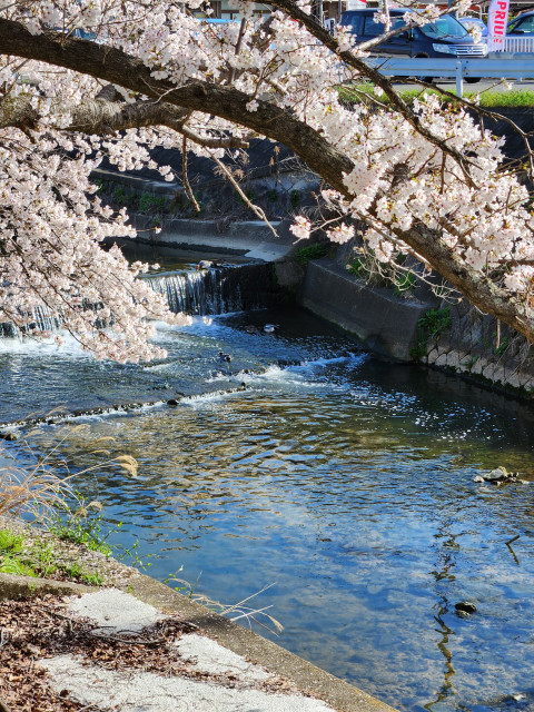 天気が良くなると、川面が青く光り・・・サクラも映えますね