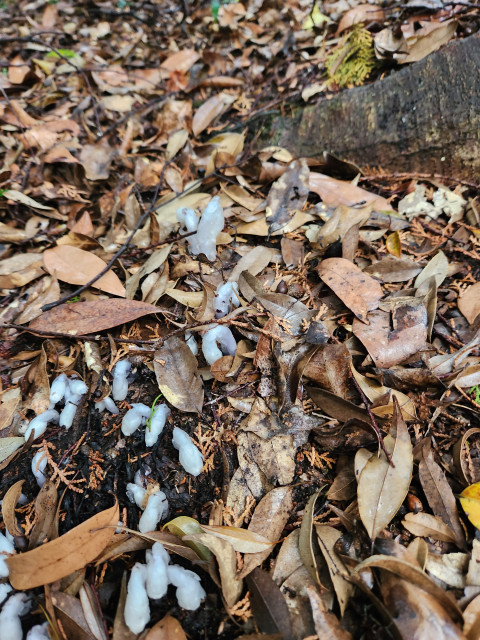 見たことありますか。森の中、日陰の植物で別名「ユウレイタケ」と呼ばれています。