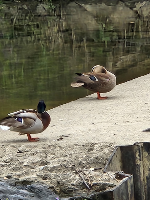 渡り鳥のシーズンは終わりましたが、一分のマガモは残っています。何らかの理由で渡りを止めて残っているのです。