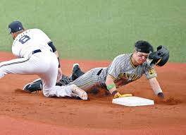 5回表、佐藤輝が中安打で出塁すると、初球に2盗を決めるヘッドスライディング。これで山本が動揺した。 渡辺諒のタイリーで初得点。