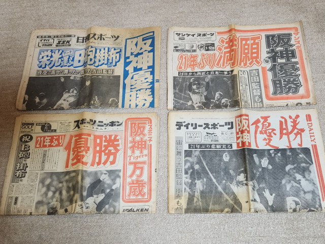 サンスポ、スポニチ、デイリーが赤色。日刊スポーツが青色でした。