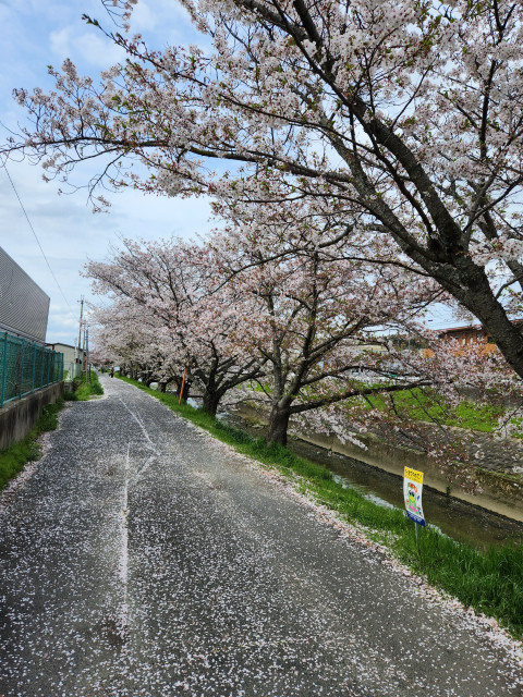 道路上には花びらが・・・ 誰も歩いていませんね