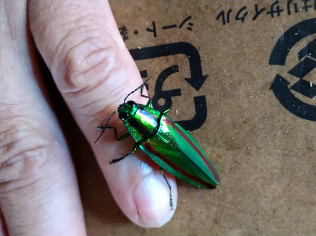 最近、タマムシ見たことありますか。綺麗ですねえ!!!