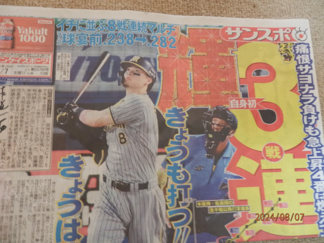 ・8月に入って4本塁打 打率は20打数13安打 驚異の0.650