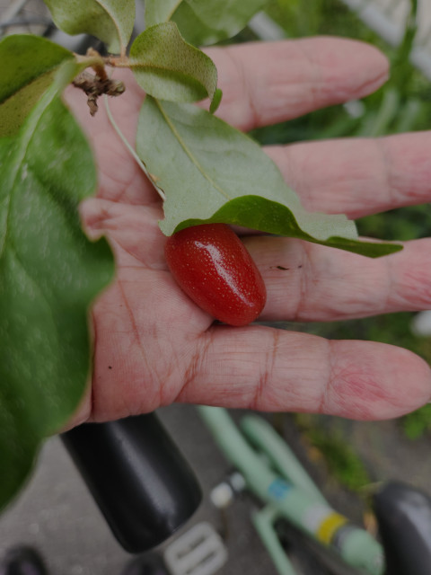 土手に大きなグミがなっていました。2粒食べたが、美味しかった。