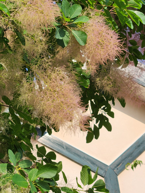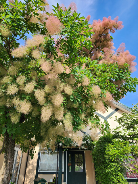 枝先につく花は遠くから見ると煙がくすぶっているように見えるので、この名前がついています。