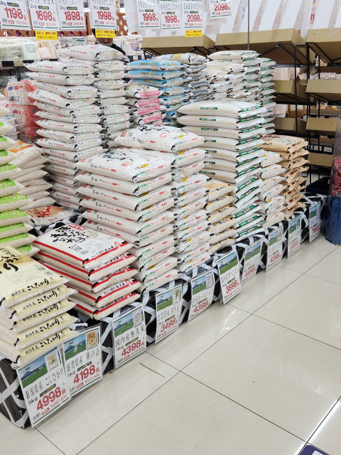 米が山積みされていました。3日前は空っぽでした。値段は高いままです。