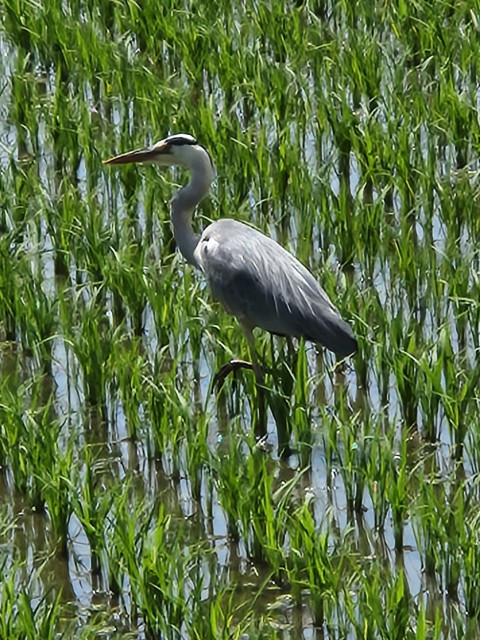 アオサギは、ここんところ毎日、近くの田んぼで見かけます。