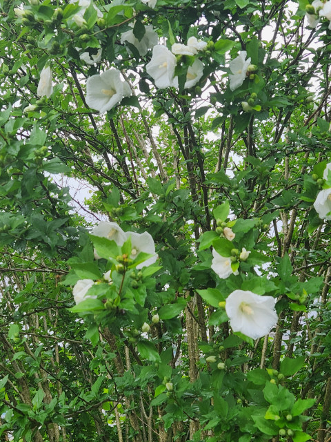 白いムクゲが咲いていました。ハイビスカスの仲間で一日花です。