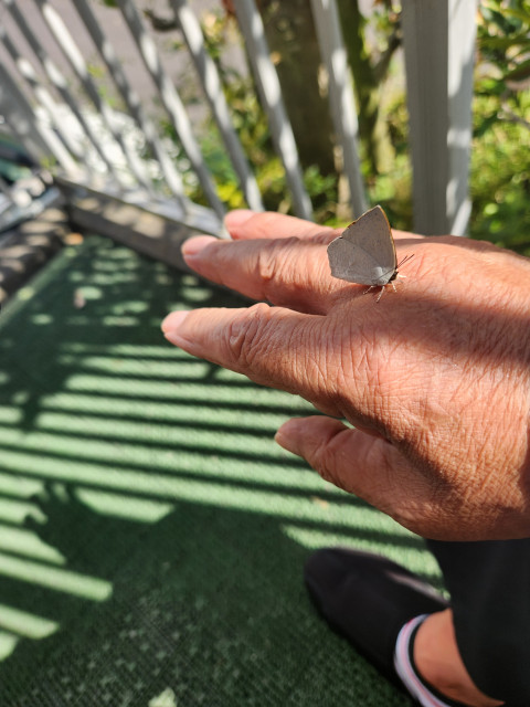 ウラギンシジミが手に乗りました。