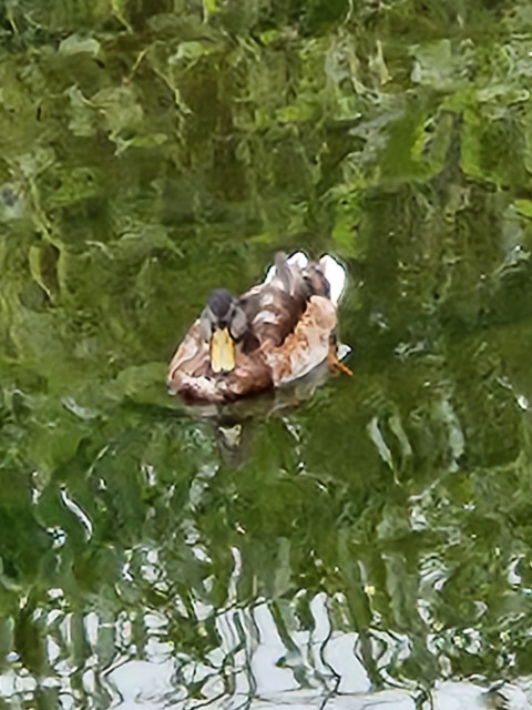 写真見させていただきました。 まず、ペアとされている写真ですが、上に写っているのはカルガモです。 問題のこの雄ですが、カルガモの近くにいるので最初カルガモとの雑種、いわゆるマルガモかと疑ったのですが、嘴が完全に黄色いこと、脇の羽が羽の周囲が褐色で内部が白っぽいこと、腹部は白いこと、眉斑がはっきりしていないことから、マガモそのものだと思います。ただ、上尾筒にマガモ雄特有のくるんと巻いた羽が見られないこと、この時期なので渡ってきたものとも考えられますが、それにしては写真が撮れるくらいに近付けていることなどから、野生のマガモというよりエクリプスから生殖羽に移行中と思います。