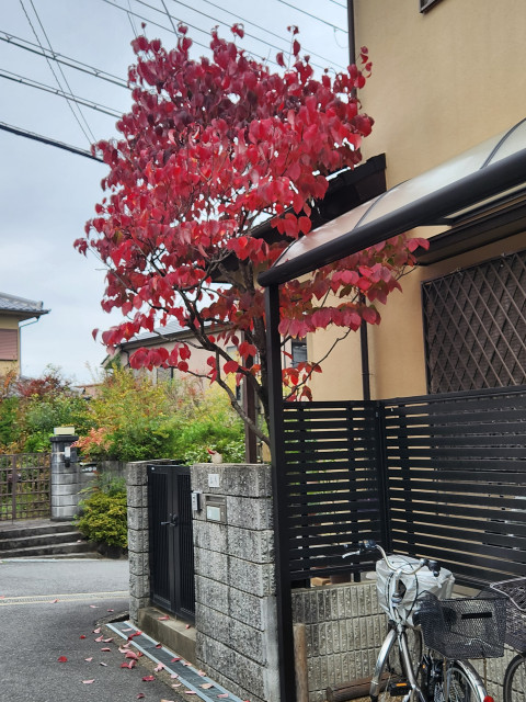 今は紅い枝と緑の枝が混在しています。あと半月で真っ赤に紅葉するでしょう。