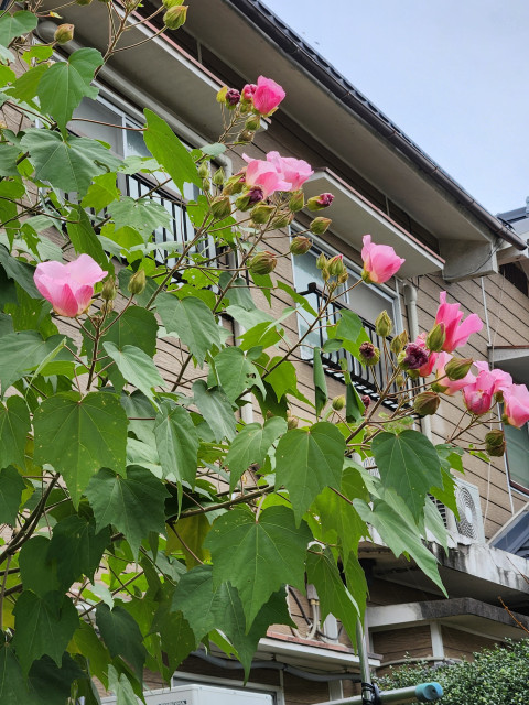 晩秋から冬に向かっていますが、まだまだフヨウが咲いています。