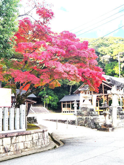 生駒神社のモミジも真っ赤に染まっています。 秋本番ですね。