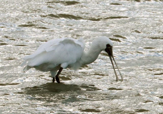 黒い顔(ツラ)にヘラのような嘴(くちばし)の鷺(サギ)です。