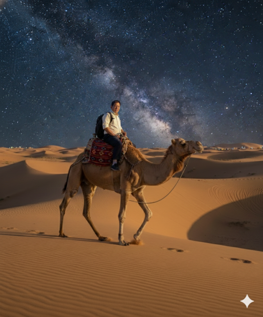 星空の砂漠でラクダに乗りました。