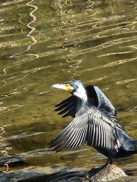 カワウが羽をバタバタさせて乾かしていました。