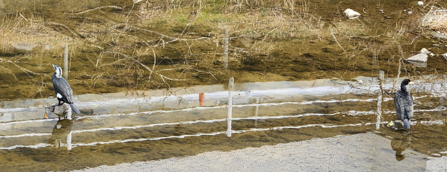 10mほど離れてカワウの番(ペア)が並んでいました。