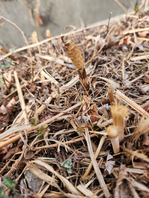 もう、そろそろツクシが出るころと・・・草の根元を丹念に探索しました。