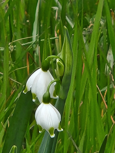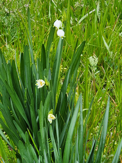スイセンの繁殖力が強すぎて、スノーフレークは埋もれています。