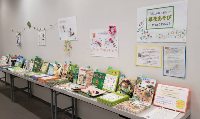 5/18の交流会の内容にちなんで、草花あそびに関する絵本などを多数展示しました。