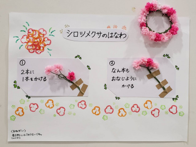 それまで枯れないように、花かんむりや笹舟などは、紙や布地で作ってあります~🍀