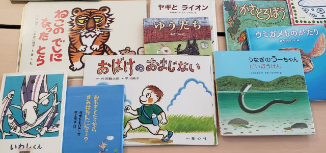 持ち寄った本は、小学校での朝の読み聞かせ、おはなし会、学童…に使いたい本、ブックトークに使いたい本など。