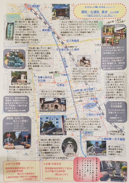 ②おはなしの輪のスタッフで先日行った『幼ものがたり』散歩レポート。現在の地図にゆかりの場所を示したガイドを作成しました。新たな視点で地元・浦和を歩いてみませんか~