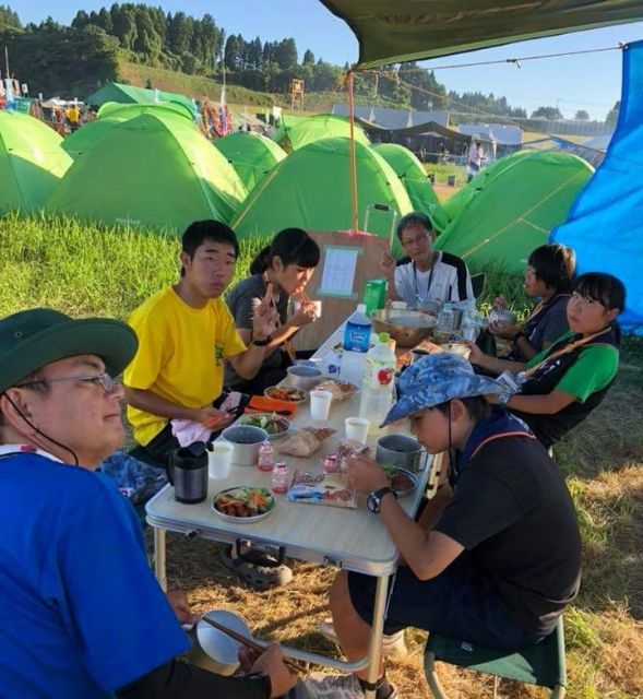 今年8月4日から10日まで、石川県珠洲市内にて、ボーイスカウト1万3,000人の関係者が集い、4年に1回の「日本スカウトジャンボリー」が開催されました。わが団からはスカウト6名、指導者4名が参加しました。期間中、野営生活を送り、毎日、場内外で開催される野外プログラムに挑戦し、全国のスカウトとの交流やスカウトスキルの体験・挑戦をしました。スカウト達の日焼けした笑顔には、達成感と自信が表れていました。