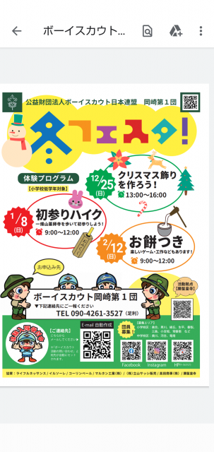 ボーイスカウト岡崎第1団は岡崎市東北部地域を活動エリアとし、最寄りの駅は、名鉄本線の「美合駅」「藤川駅」及び「男川駅」です。主な小学校区は美合小・男川小・緑丘小です。