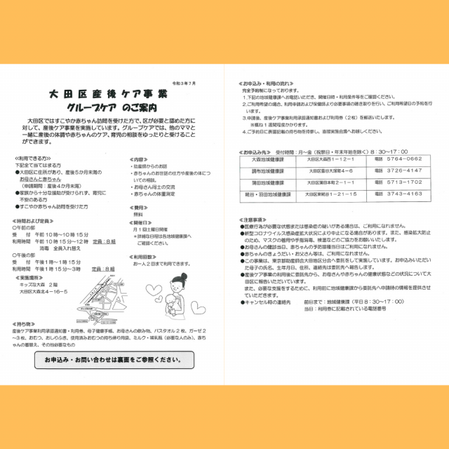 大田区HP(大田区産後ケア事業)