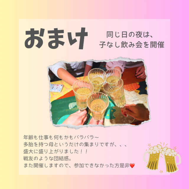 年齢も育った環境も違う、ただ多胎児を育てているだけの集まりですが、会話が止まらない。大変盛り上がりました!!