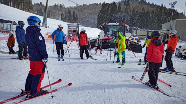 スキー板の特性の説明もあり、カービングスキーの利点を理解しての講習となりました。 特にテクニカル受検希望者中心の例会ということもあり、テクニカル合格のためのポイントを踏まえての講習は、さらに受講者個別の問題点も分かりやすく説明があり技術向上に役立ったと思います。