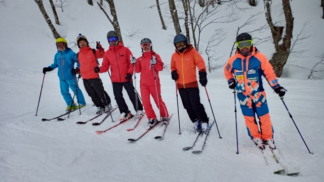 寺岡班は、ストックの構えやターンの切り替えについて(股関節のたたみを1度ニュートラルに戻してから左右切り替える事)などワンポイントアドバイスをし、伸び伸びと滑っていただきました。タカスエリアとダイナエリアの一部上級コースを含め初級中級コースを一通り回りました。