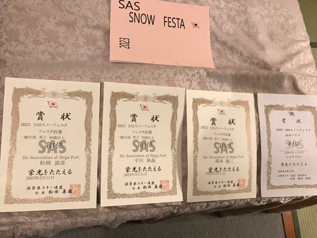 例年 閉会式時に表彰があるのですが、今回は夕食時に技術選と団体戦フリー演技の表彰がありました。