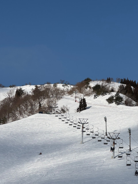 ヨゴコーゲンリゾート ヤップに9時半に現地集合、参加者は幹事を含め5名でした。事前に天候が懸念されていましたが、終日青空の下で過ごすことが出来ました。ヨゴコーゲンリゾート ヤップスキーは、アクセスしやすく山頂から敦賀湾を眺望できる立地条件の良いスキー場でした。それほど大きなスキー場ではなくコース数も少なめながら変化に富み練習には良い環境でした。雪質は午前から一足早い春雪で、特に午後になるとザクザクと足場が不安定な状況となりました。