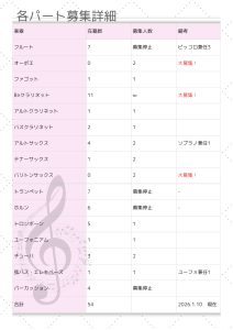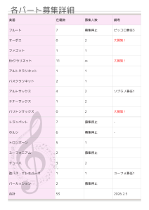 *練習日以外に訪問演奏の予定が入ることがあります