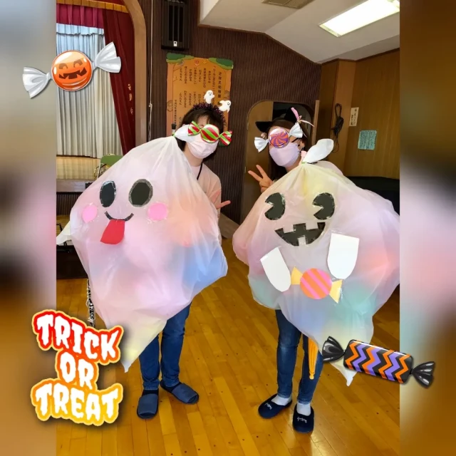 用意したゆらゆら大きいおばけや、キャラクターのお面にも喜んでもらえ、あっという間の楽しい時間となりました。