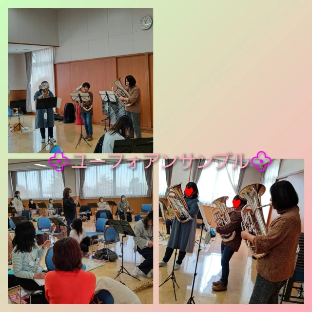 今回、コンサート本編の他に何組かアンサンブル部隊の演奏もあります。今日はユーフォニアムチームが仕上がりを聞かせてくれました。当日をお楽しみに😆