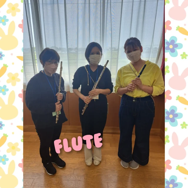 真面目なフルートパート♪普段は大人しくみられがちですが、メロディやソロではがんがん吹いちゃいます💪コンサート当日は一列目のキラキラ輝くフルートにご注目ください♡