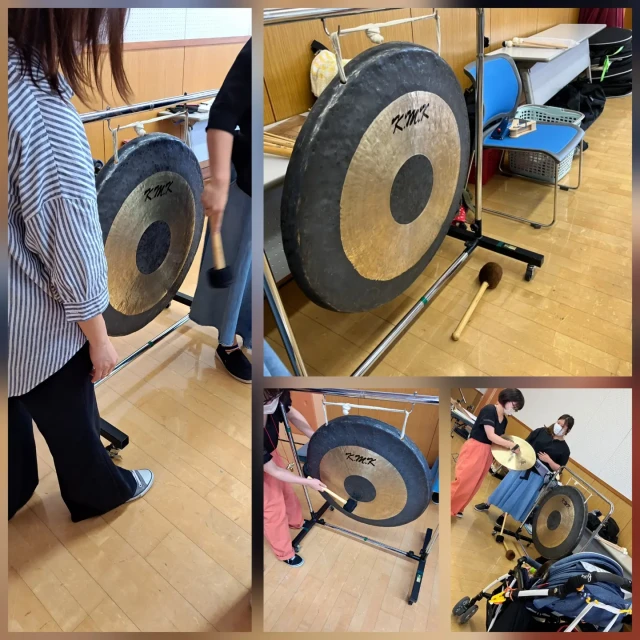 パーカッションで本番使用する銅鑼も今日は用意されていて、その音色調整も行いました