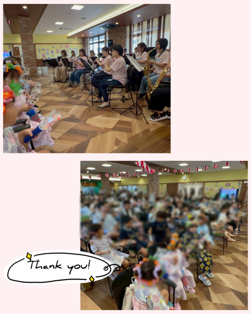 ステージは可愛らしいチアダンスや和太鼓演奏など様々なジャンルの団体の中、私たちも夏祭りらしくワクワク、楽しくなる曲を演奏させていただきました!