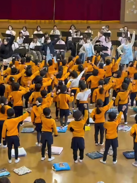 運動会の準備体操で踊った曲や、鼓笛隊で披露した曲も演奏させて頂き、大盛り上がり♪
