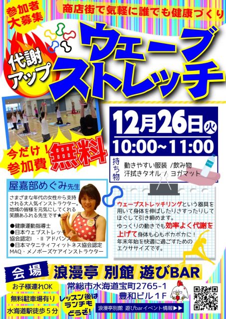 水海道駅から徒歩5分のダイニングバー<浪漫亭>で屋嘉部先生のウェーブストレッチレッスンがありま~す❗