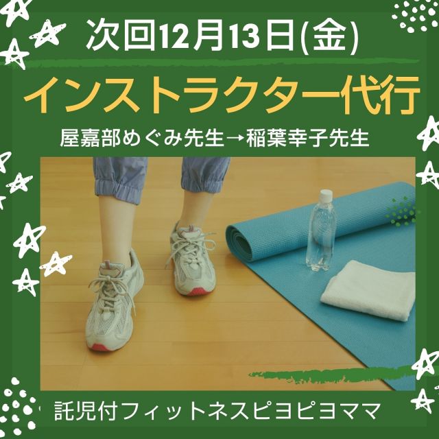 さて、来週13日(金)のレッスンはインストラクターが代行になります。