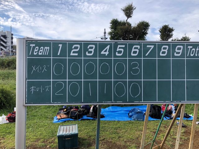 先頭で好調のはまちゃんのライトにおっつけての素敵なヒットとしゅんやの内野安打、その後、山中のサードゴロではまちゃんがホームをつくもタッチアウト、おしーい(^^;