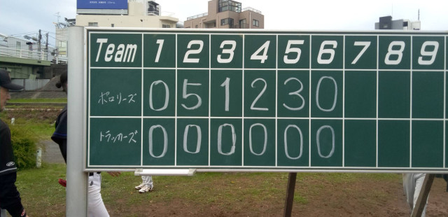 で試合開始トラッカーズ戦3人のピッチャーを打ち崩し大量の11得点全員野球で勝利しました。
