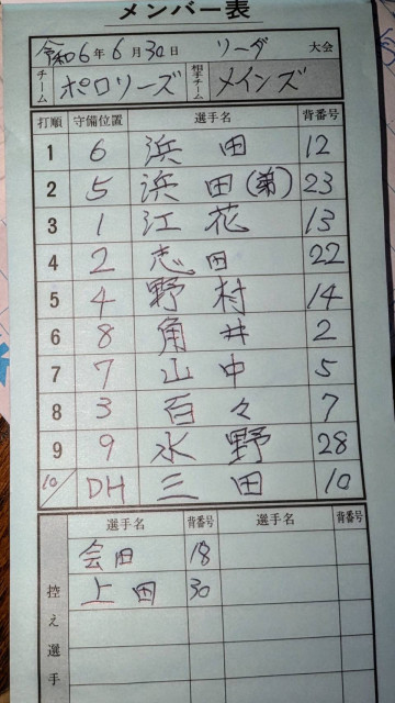今日の試合の結果は11対2で完敗でした。それも、相手チームのメインズは若い人ばかりで、中でも甲子園に出てプロにもスカウトされるつわ者が3ランとソロと2本のホームラン