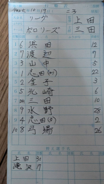 そして、4回はお互い0点にそして、5回裏ランナー置いて山中のタイムリーで追いつきそのあと、金子くんの犠牲フライで勝ち越しノリ君から代わった金子君がしっかり抑えゲームセット何とか1点さで、最終戦勝ちました!👍