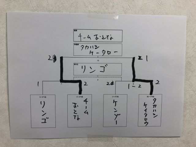 余裕こいていた「たかはしけいたろう*」を破り「チームおとな」が優勝するという( ; ; )。*あくまでチーム名です。